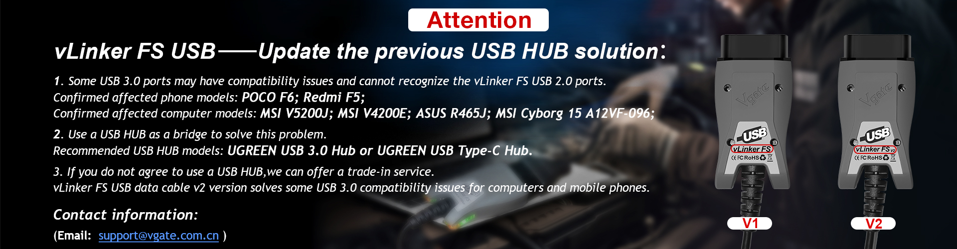 vLinker FS USB data cable v2 version solves some USB 3.0 compatibility issues for computers and mobile phones.