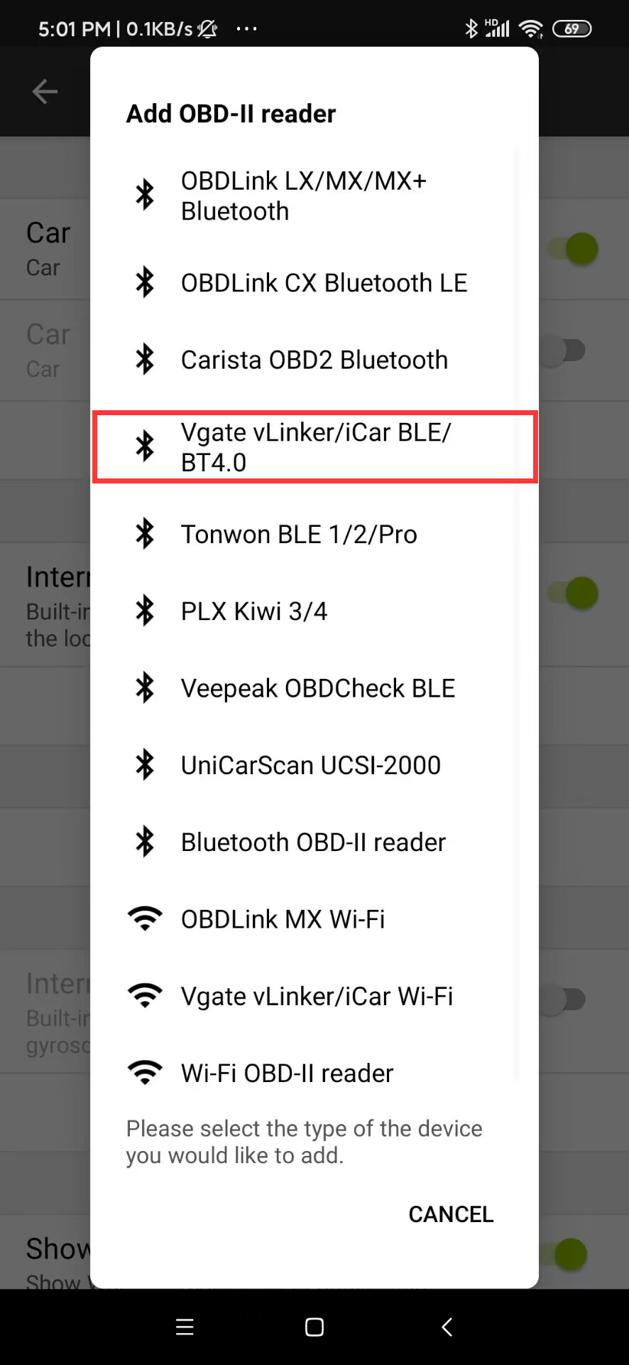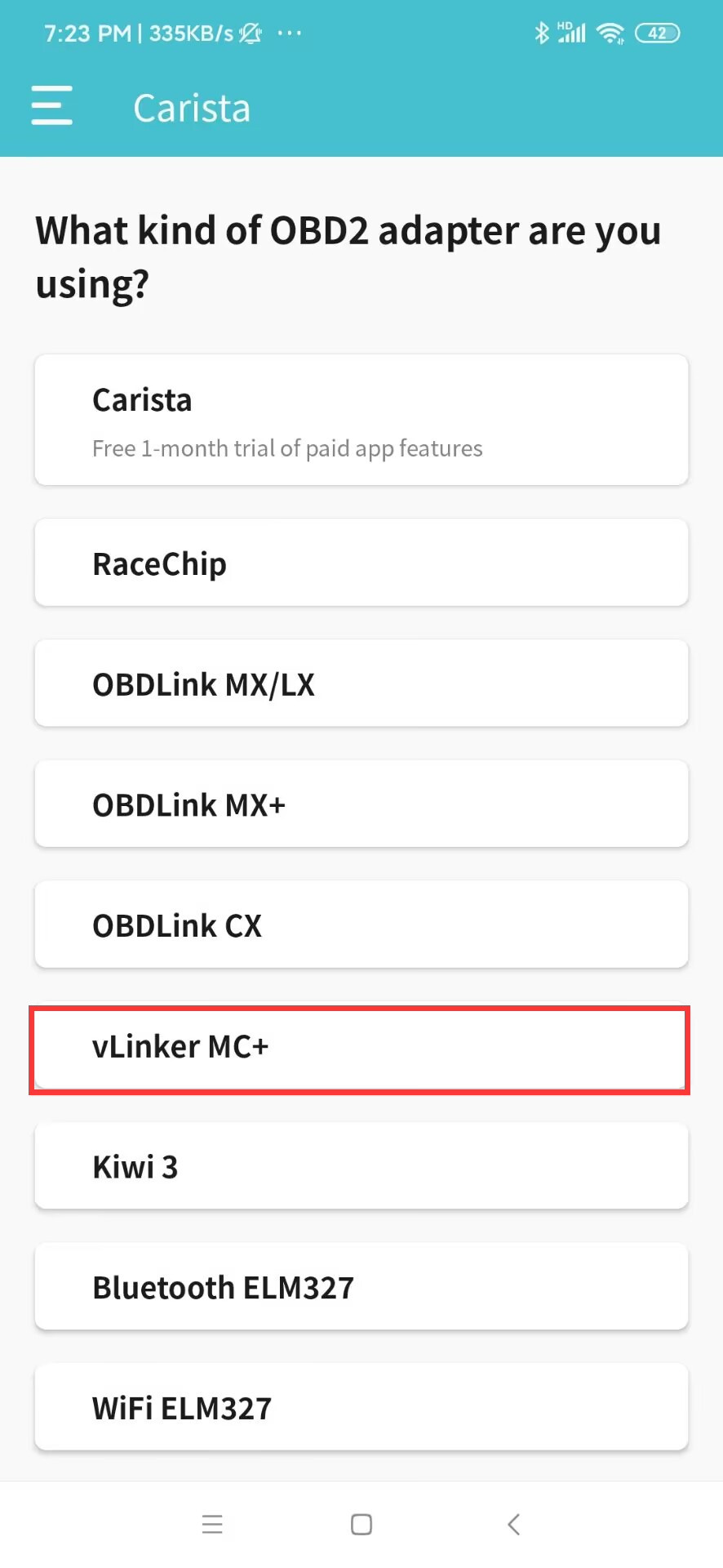 vLinker BM+_Carista_Android