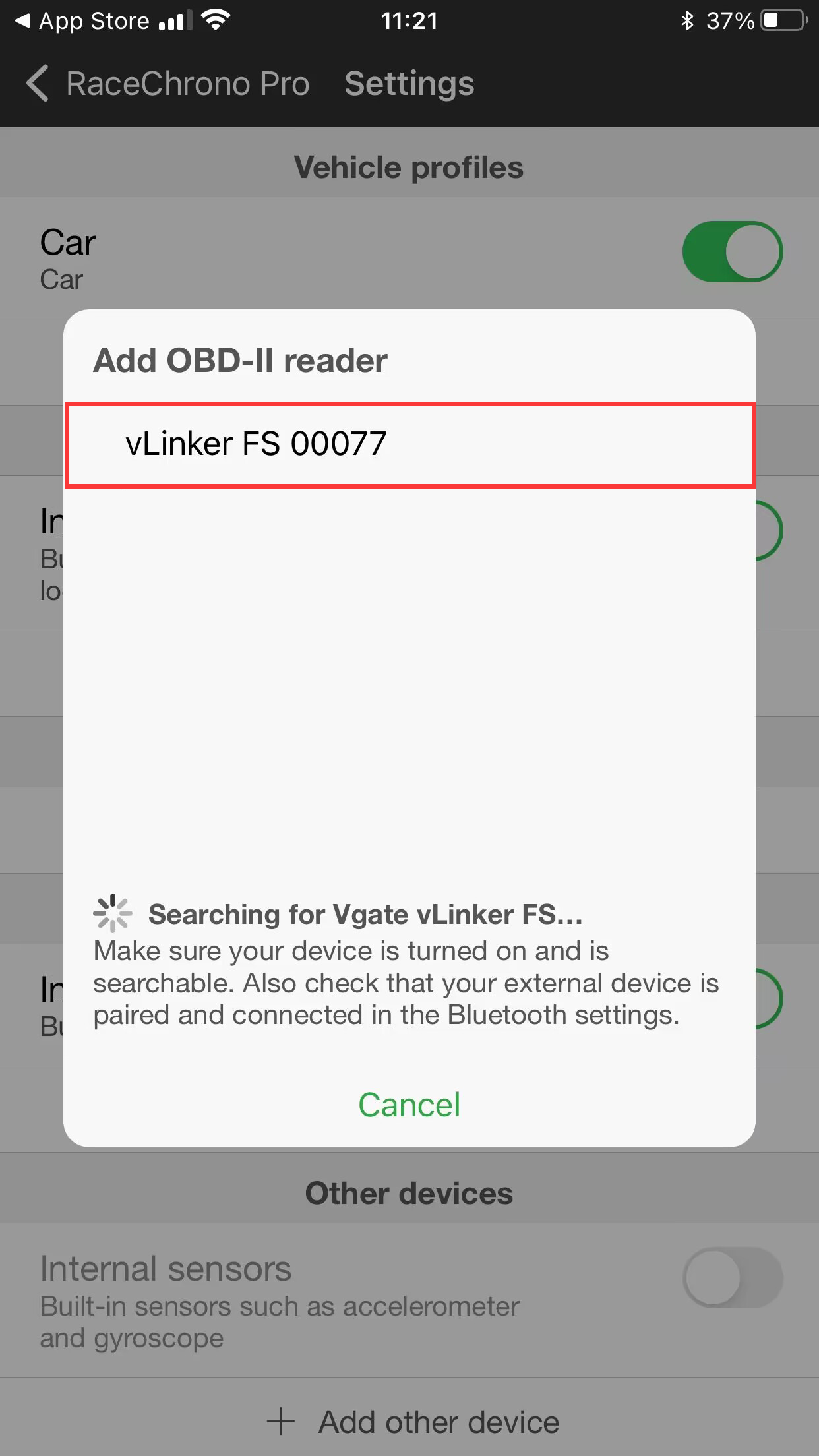 vLinker FS BT_RaceChrono Pro_iOS