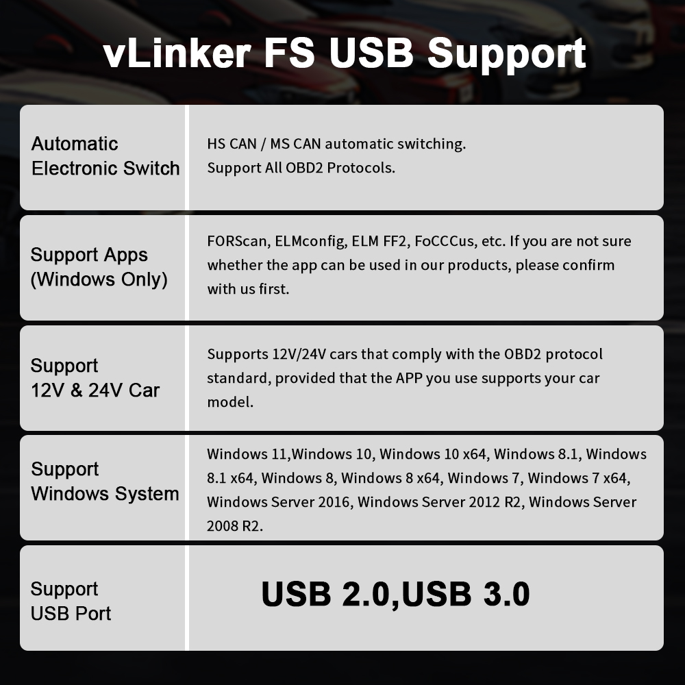 Vgate vLinker FS OBD2 USB Adapter for FORScan HS/MS-CAN Auto Switch